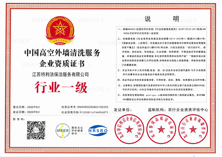 中國高空外墻清洗服務企業資質