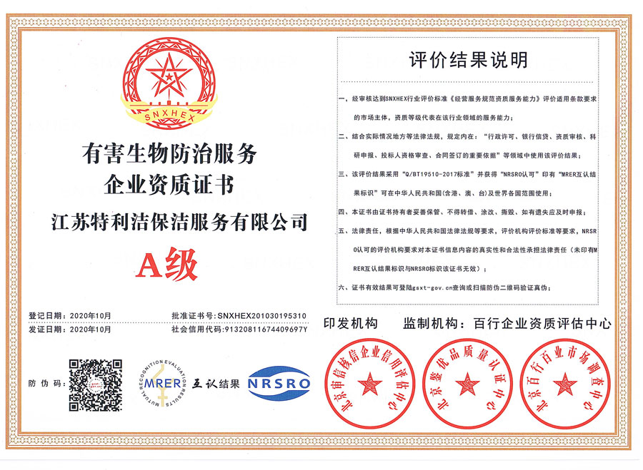 有害生物防治服務企業資質證書